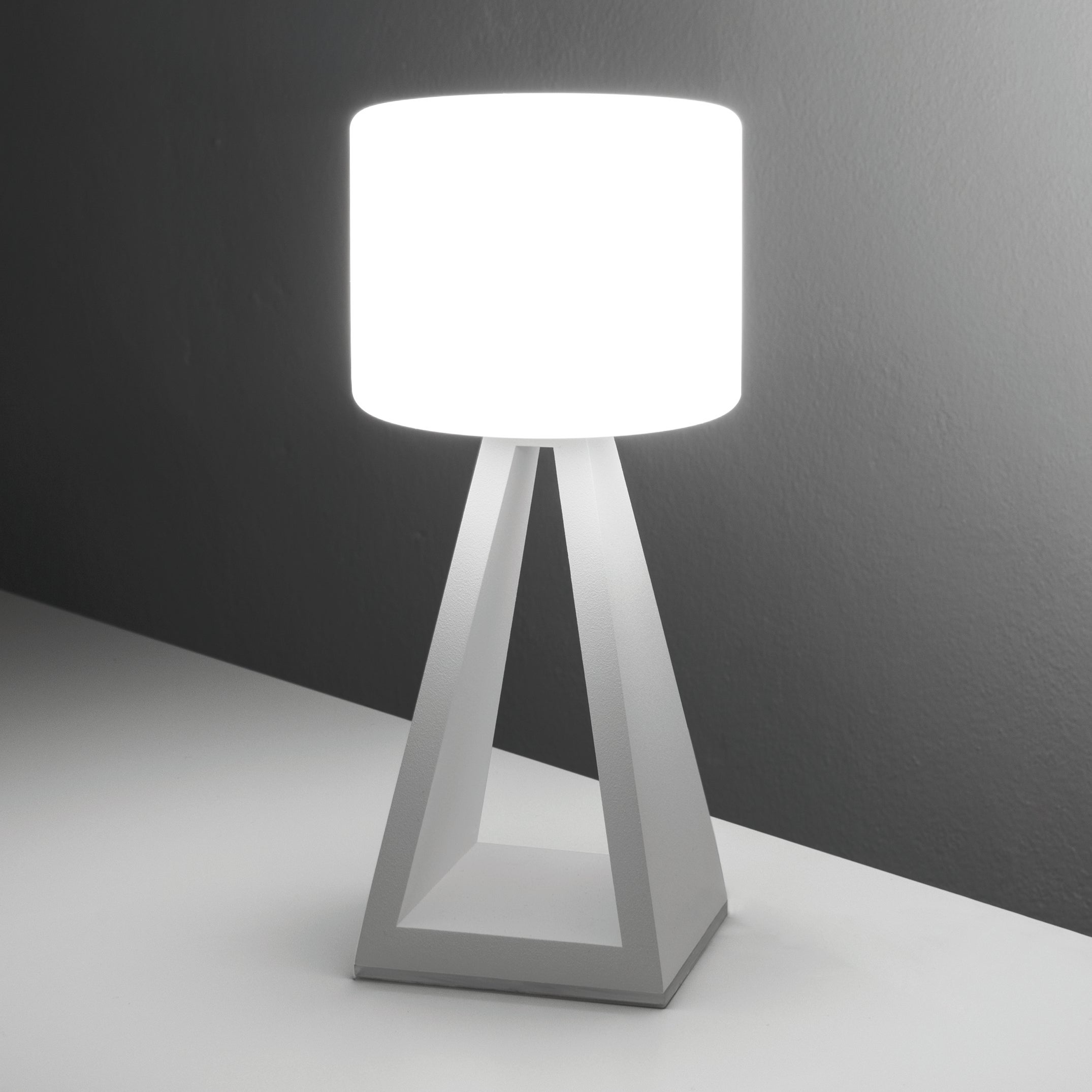 Struttura in alluminio bianco, diffusore in acrilico, LED integrato 7W, luminosità 700 lumen, altezza 21 cm. Funzione touch integrata per selezionare diverse funzioni. Funzione touch integrata per selezionare diverse funzioni. Dimmerabile, il variatore permette di regolare l'intensità