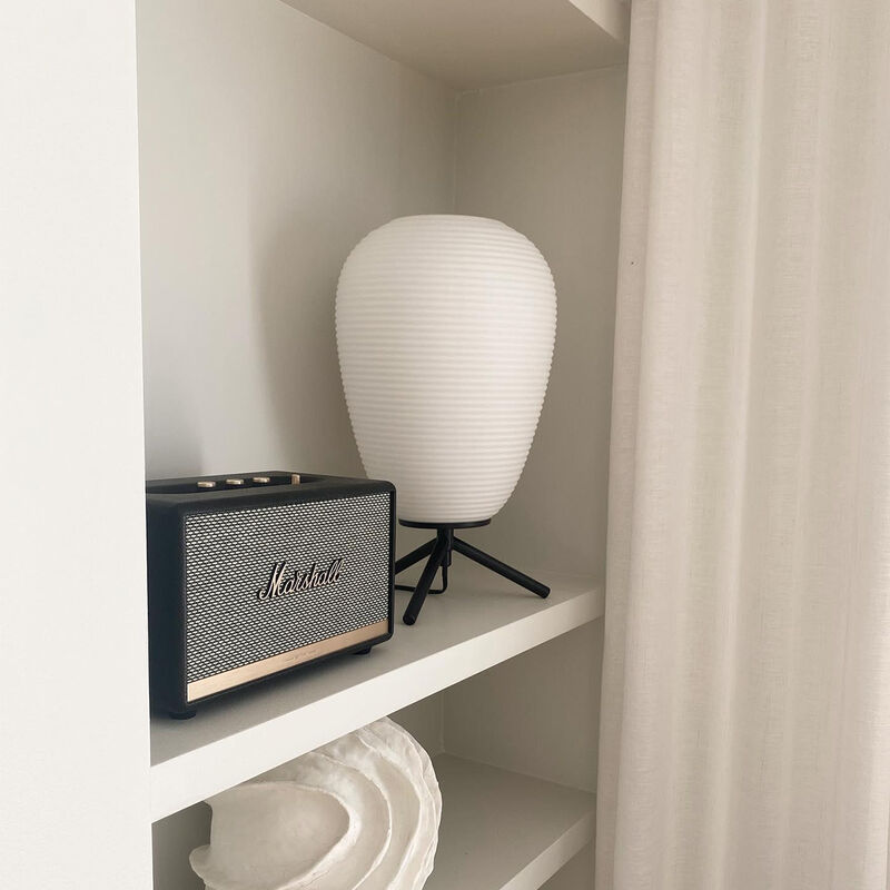 QAZQA Lampada da tavolo nera 24 cm vetro opale - HERO Video La HERO è una lampada da tavolo dal design particolare. Grazie al vetro cristallo opalino a coste, questa lampada fornisce un'ottima luce morbida. È necessario ordinare una sorgente luminosa E27 con un massimo di 60 watt. La lampada può anche essere dimmerata con un dimmer esterno in modo da poter creare la tua atmosfera perfetta. Fai attenzione a questa HERO: con questa lampada vengono posizionati due perni sotto l'accessorio che devi posizionare per fissare correttamente il paralume in vetro. Quelle spille finalmente scompaiono. Con un'altezza di 42,5 cm e un diametro di 24 cm, HERO è una lampada da tavolo di dimensioni ideali. Ad esempio, puoi usarlo sul tavolo della sala da pranzo, sulla scrivania, sul tavolino da caffè o sul comodino come luce di lettura! La lampada viene fornita con un cavo da 180 cm e una spina, in modo da poterla facilmente accendere / spegnere. Ottieni subito questo creatore di atmosfera e completa i