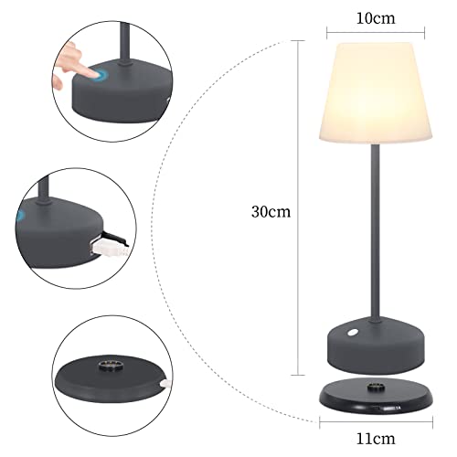 GGOO Lampada da tavolo a LED dimmerabile a batteria senza fili Touch ricaricabile lampada da tavolo portatile e 8 colori disponibili IP54 impermeabile per ristorante, camera da letto, rbeit, bar