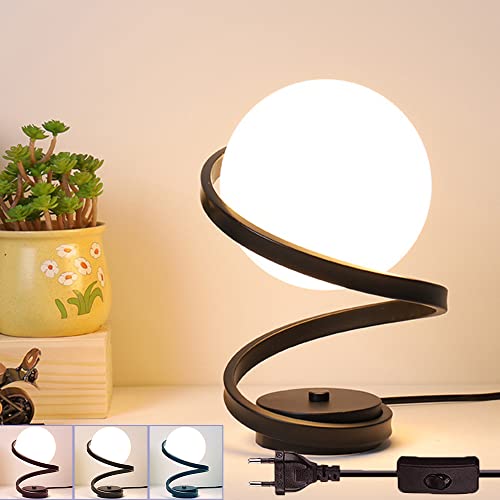 Lampada da Tavolo Dimmerabile LED Lampada da Comodino con Interruttore Spina Lampada da Scrivania Moderno Spirale Design Luce Notturna per Camera da Letto Soggiorno Camera da Bambini Ufficio, Nero
