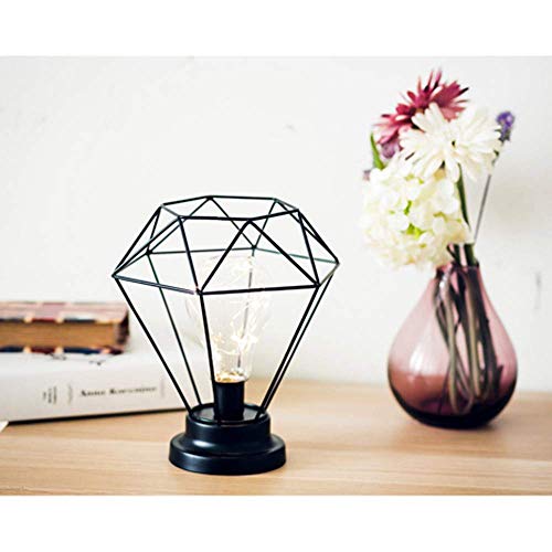 Lampada da tavolo in ferro diamantato, Lampada da comodino in filo di ferro in stile nordico Luce notturna a lampadina USB per camera da letto, soggiorno, bar, hotel (Rosa)
