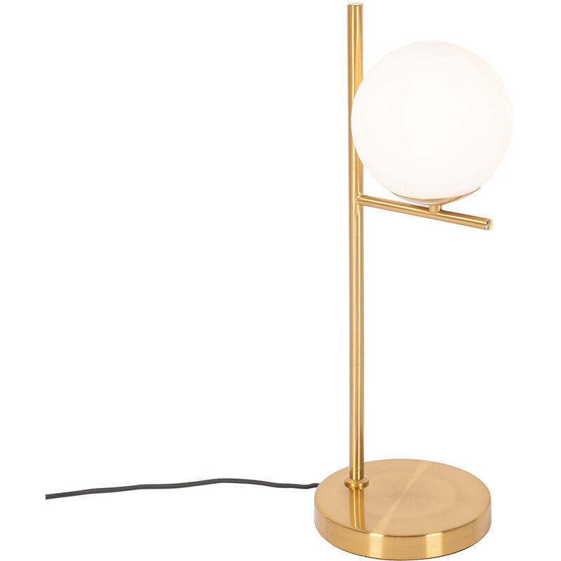 QAZQA Lampada da tavolo Art Deco oro e vetro opalino - Flore Flore è un'aggiunta perfetta ai tuoi interni. Questa lampada da tavolo è perfetta per creare l'atmosfera giusta nei tuoi interni: è un vero e proprio complemento d'arredo per il soggiorno, la camera da letto o l'ufficio a casa. È rifinita con un portalampada dorato e vetro opale. Il vetro opale garantisce una piacevole distribuzione della luce. La lampada ha un'altezza di 52 cm e un diametro di 18 cm. La lampada è dotata di un cavo (lungo 200 cm) che consente di accendere e spegnere facilmente la lampada da tavolo. Attenzione: Flore viene fornita senza lampadina: assicurati di fornire una lampadina LED E14 di max. 25W. Scegli uno stile elegante e di classe per la tua casa con questa lampada Art Déco. Anche da spenta, Flore è un'attrazione per la casa. Portalampada: E14 . Max 1 x 25 W, 230 V Adatto a: LED Voltaggio: 220V/230V IP Classe di protezione: [IP20] A prova di polvere Funzioni extra: Regolabile: Dimmer escluso,Sì, con
