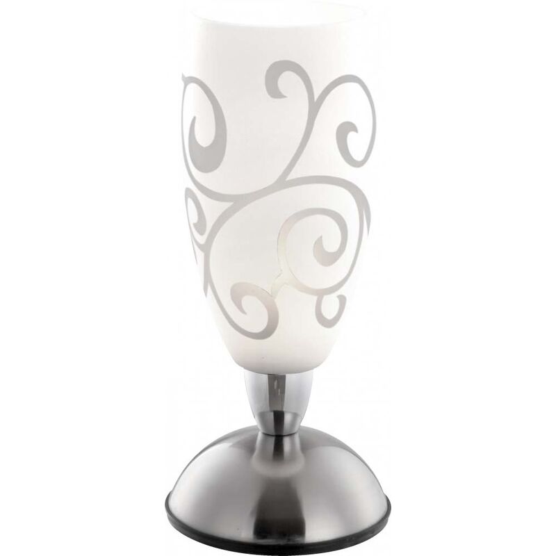 Descrizione 150 centimetri, toccare dimmer, D:: 125, H: 280, escluse 1xE14 40W 230V luce da tavolo nichel, cromo, opale modello satinato, cavo smerigliato. Dettagli della lampada TIPO A • Lampada: lampada da tavolo  • Materiale: nichel opaco, cromo  • Ombra: opalino satinato con disegno  • Dimensioni W x H in mm: 280  • Capacità: 1x E14 Lampadine  • Luce: No  • Altro: Cavo: 150cm  • Peso: 0.58 A • Particolarità: TL nickel satinato, cromo, escluse 1xE14 40W. Dettagli della lampada  • Produttore: Globo  • Attacco: E14  • Materiale: nichel opaco, cromo  • Schermo: opalino satinato con disegno  • Potenza: 40 W  • Alimentazione: 230 V (volt)