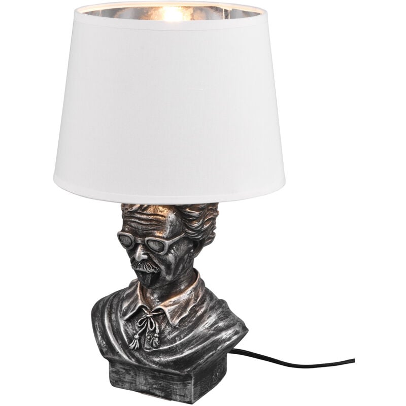 Lampade da Tavolo Lampada da Tavolo da Interno Attacco E14 in Ceramica Argento anticato Albert Lampada Da Tavolo Metallo Argento Anticapto con Paralume Bianco H.36Cm Caratteristiche Tecniche Stile Moderno Fonte di luce principale: Lampadina (non inclusa) Attacco E14 Materiale: Ceramica Colore Finitura: Argento anticato Potenza (W): 3,5 Lumen: 320 Kelvin: 3000K Alimentazione (V): 230 Durata Nominale (h): 25000 Numero Accensioni: 15000 Classe energetica: E Altezza (cm): 36 Diametro (cm): 21 Cavo-Base-Interruttore (mm): 300 Cavo-Interruttore-spina (mm): 1200 Colore del cavo: Nero Peso netto (kg): 0,89