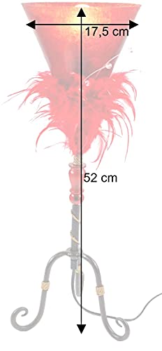 Dimensioni: 52*17,5*17,5 cm, Base in metallo rustico con cordoncino in metallo dorato e perline in piume tinte in colore della lampada con perline in poliacrilico trasparente, paralume in fibra di vetro Elettrico: 2m, E14/max