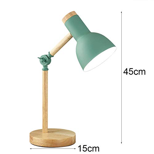 Lampada da tavolo in Legno e Metallo Moderna E27 Lampada da Scrivania Lampada da comodino Ferro Regolabile Con interruttore per Camera da letto soggiorno studia ufficio bagno, Verde