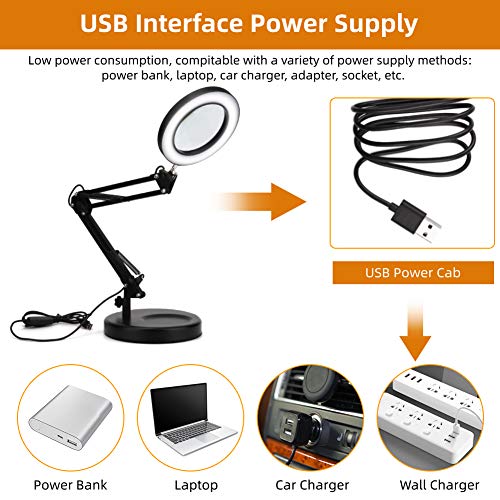 Lampada da tavolo USB con lente d'ingrandimento da tatuaggio Lampada pieghevole con lente d'ingrandimento 5X Lampada da tavolo con base flessibile Lampada da tavolo con lente d'ingrandimento e lampada