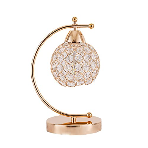 Lampada da tavolo moderna in cristallo, Lampada da comodino in argento cromato, Lampada da scrivania con interruttore on / off in linea, Luce notturna decorativa per camera da letto (Gold)