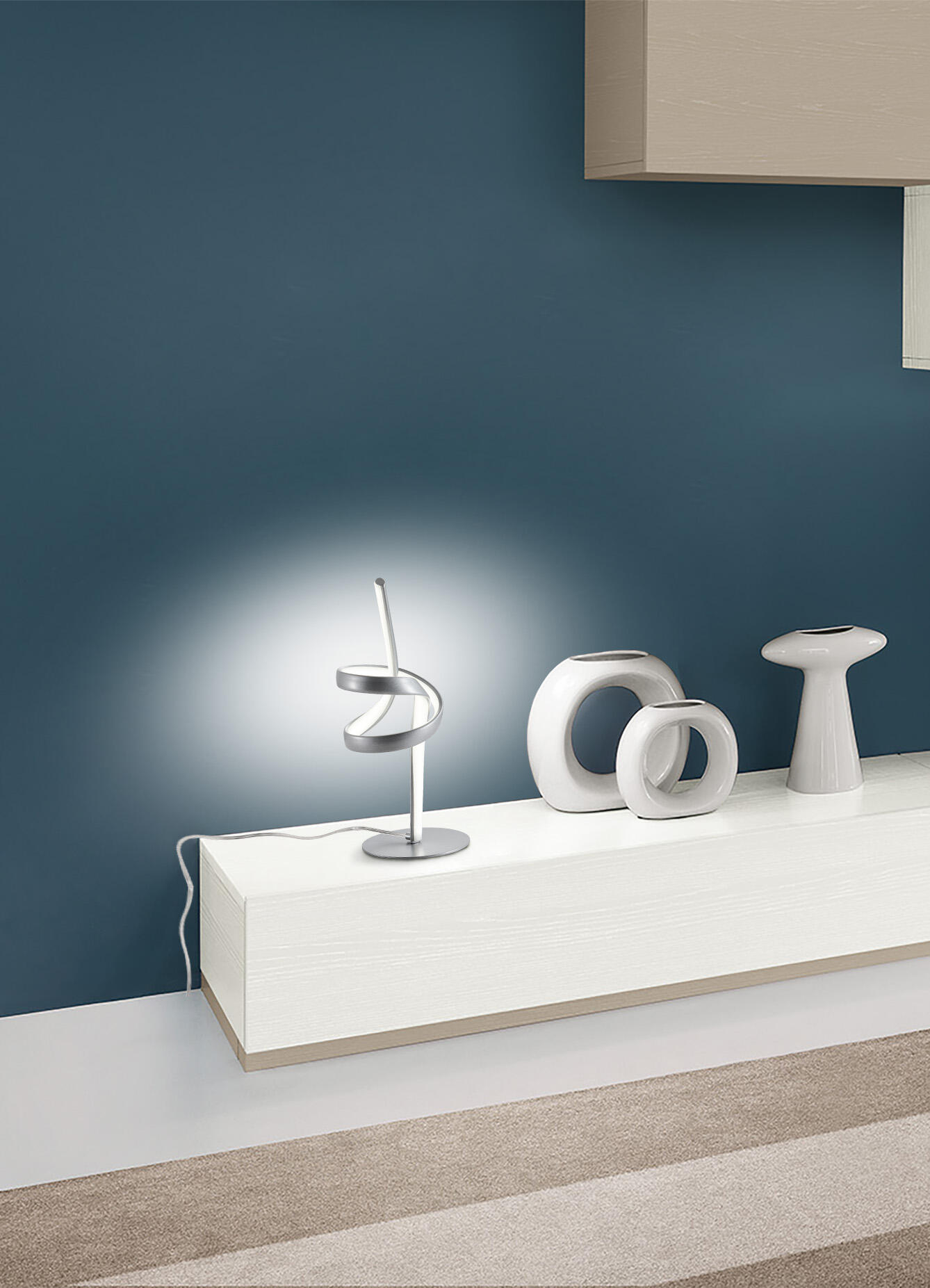 Lampada da tavolo moderna Malika in alluminio silver e silicone bianco. LED integrato