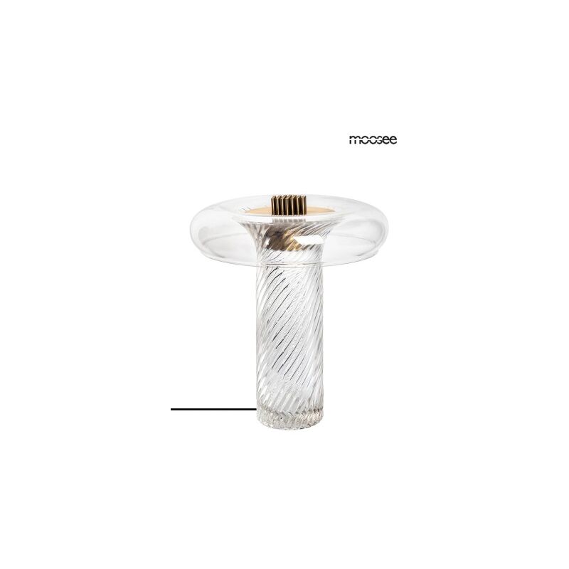 Lampada da tavolo MOOSEE ICAR oro. L'elegante struttura è realizzata in vetro trasparente a forma di fungo e arricchita da dettagli in acciaio dorato. Il paralume è montato su una base massiccia splendidamente decorata che mette in risalto lo stile dell'intera lampada Icar per la tua camera da letto, soggiorno o toeletta Luce: LED 7 W / 560 lm / 3000 K Apparecchio: altezza 41 cm / larghezza 36 cm / profondità. 36 cm Paralume: altezza 9 cm / diametro 36Base: altezza 37 cm / diam. 12 cm Cavo: 115 cm Peso netto: 5,3 kg Dimensioni imballo: 59 cm / 42 cm / 42 cm.