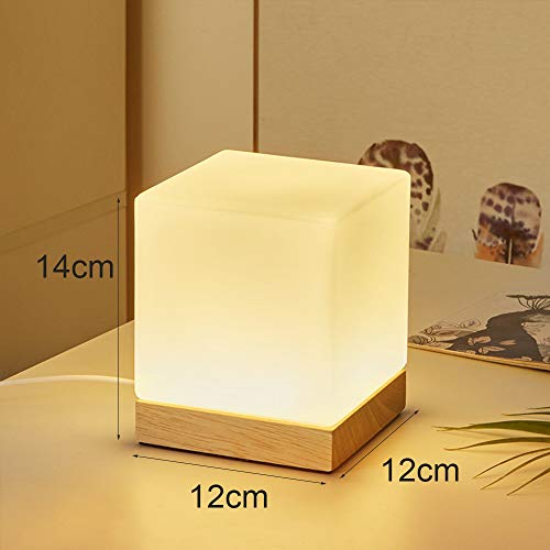 Lampada da Tavolo a Cubo a Led Luce Notturna con E27 Base in Legno Lampada da Comodino moderna bianca Con interruttore per Camera da Letto Soggiorno Ufficio Casa Scuola Materna Baby Room