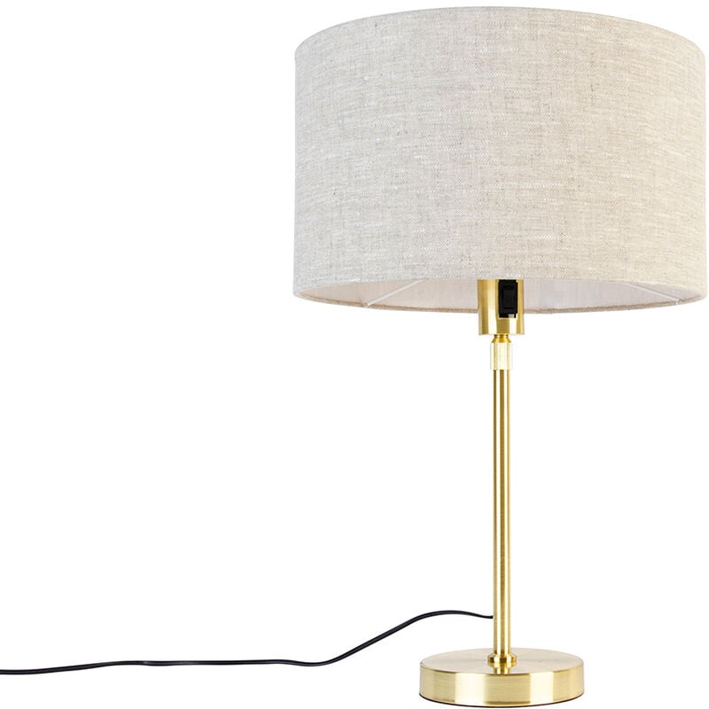 QAZQA Lampada da tavolo oro orientabile con paralume grigio chiaro 35 cm - Parte Questa classica lampada da tavolo Parte è un'aggiunta suggestiva ai tuoi interni. Con il suo paralume rotondo in lino grigio chiaro, crea immediatamente un'atmosfera morbida in casa con una luce diffusa. La lampada è anche regolabile in altezza da un massimo di 68 cm a un minimo di 53,5 cm. Il paralume ha un diametro di 35 cm e la base di 14 cm. La lampada da tavolo è dotata di un cavo lungo 200 cm con interruttore on/off. Con una bella lampadina a filamento LED E27, puoi completare questa lampada. La lampada da tavolo Parte può anche essere dimmerata con un dimmer esterno. Nota: sia la lampadina che il dimmer non sono inclusi. Acquista subito questa bellissima lampada da tavolo e aggiungi atmosfera ai tuoi interni! Portalampada: E27 . Max 1 x 60 W, 230 V Adatto a: LED Voltaggio: 220V/230V IP Classe di protezione: [IP20] A prova di polvere Funzioni extra: Regolabile: Dimmer escluso,Sì, con cavo e spina