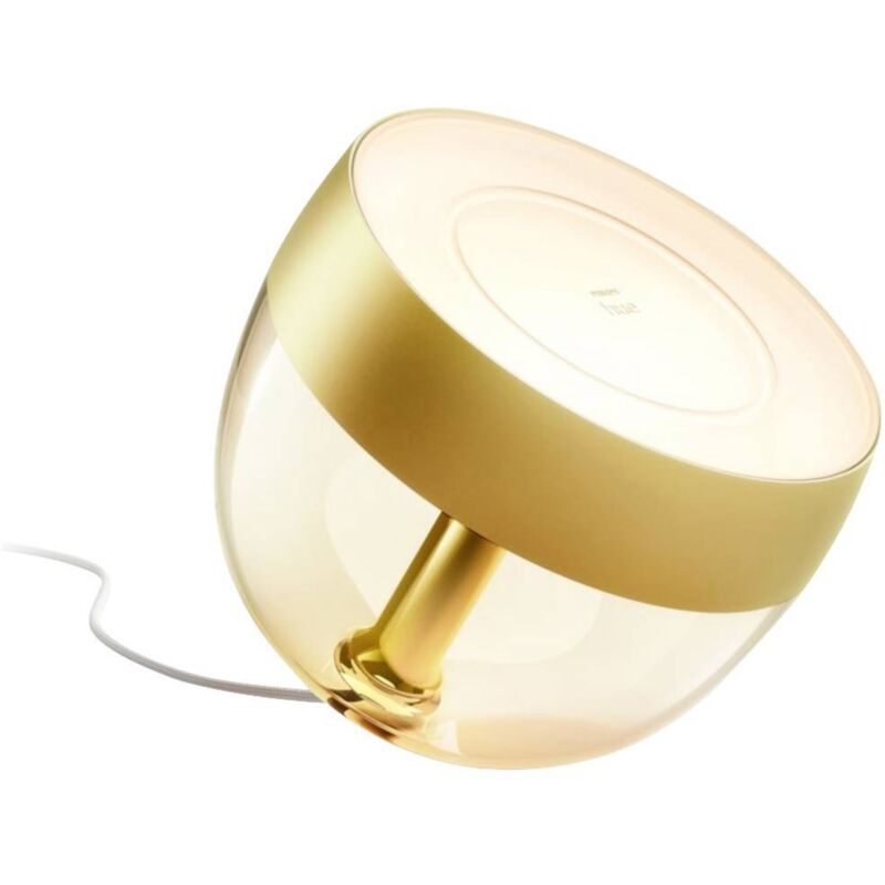 Lampada da tavolo Iris Philips Hue 41073200-oro-edizione limitata Iris non solo illumina le pareti dando un tocco di colore, ma genera anche una gradevole retroilluminazione, creando un effetto luminoso unico. Aggiungi uno Hue Bridge per sbloccare altre funzioni. Specifiche Cambia colore (PowerLED) SìIntensità regolabile con app Hue e interruttore SìPerfetta per creare atmosfera SìAlimentatore incluso SìPresa per il Regno Unito inclusa SìConnessione ZigBee Light Sì Durata fino a 25.000 oreEmissione in lumen totale apparecchiatura 570Colore della luce 2000-6500 K Hue White Color ambianceTensione di rete Da 100 V a 240 V 50-60 HzApparecchio dimmerabile SìLED SìLED integrato SìCompleto di lampada wattaggio 8.2Codice IP IP20Classe di protezione iII - bassissima tensione di sicurezza Lunghezza cavo 2 m Altezza 19,4 cm Lunghezza 20,4 cm Larghezza 18,8 cm Con l'app Bluetooth di Hue puoi controllare le luci intelligenti all'interno di una stanza. Aggiungi fino a 10 luci intelligenti e