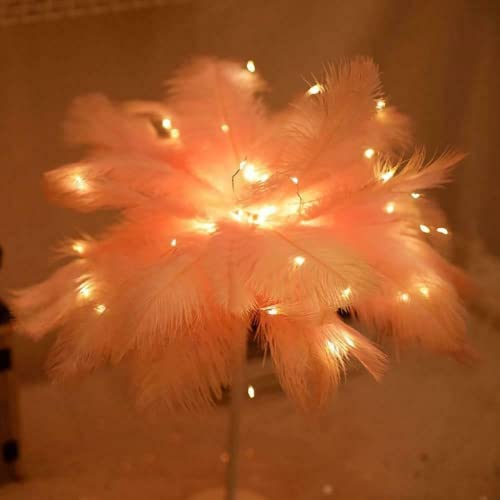 Asky Lampada da tavolo a LED con piuma, per camera da letto, comodino, dimmerabile, decorazione per la casa + telecomando (supporto oro rosa + piuma rosa)
