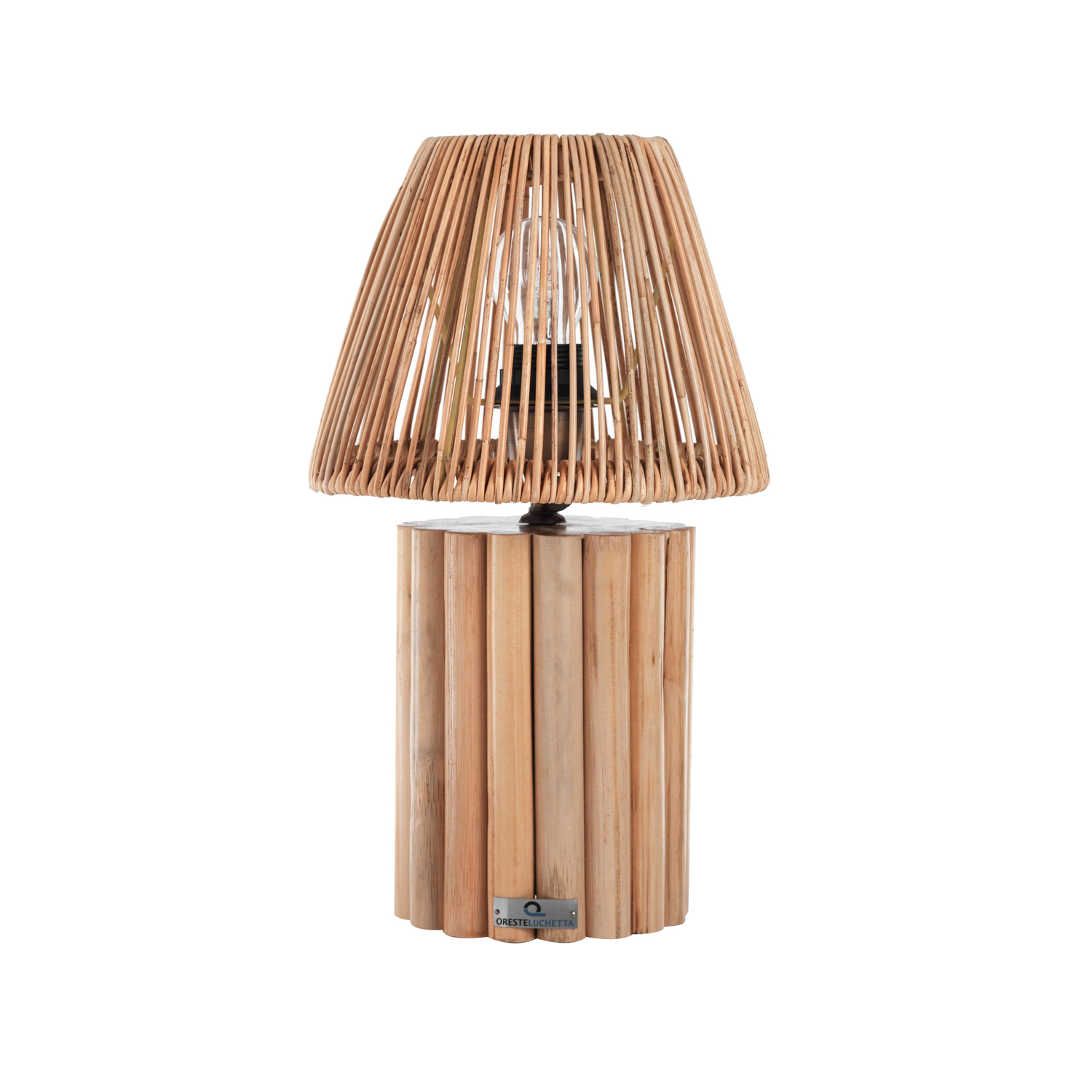 Lampada da tavolo by OresteLuchetta, brand del gruppo Tomasucci. Interamente realizzata in rattan, riesce a dare un tocco fresco e naturale al tuo giardino o terrazzo. La lampada è perfetta sia per l'esterno che per ambienti interni. Struttura e paralume sono realizzati in rattan. Dimensioni paralume cm. Ø15 H.20 Dimensioni lampada: 22,5x40x22,5 cm.