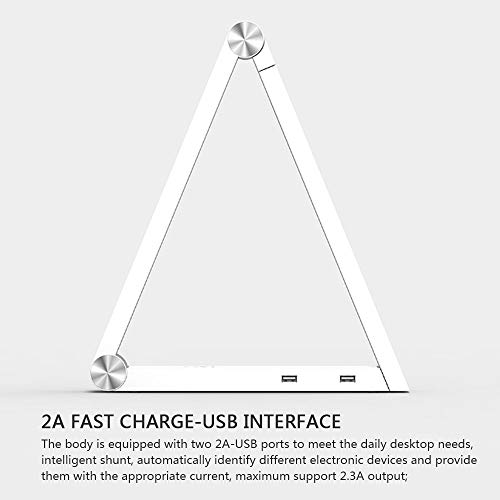 Lampada da tavolo a LED per ricarica wireless, carica USB Lampada a protezione degli occhi a triangolo creativo Rotazione a 160 ° Lampada da lettura per ufficio con camera