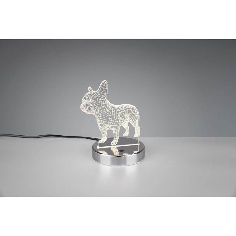 DOG Lampada tavolo GD Trio Dog di GD Trio, lampada da tavolo led a forma di cane con variazione colore rgb h. 18 Caratteristiche: Gruppo di prodotto: Lampada tavolo Tipologia: Interno Tecnologia: LED integrato Stile: Fun Materiale: Metallo Colore finitura: cromo Classificazione IP: IP20 Classe di protezione: 1 Fonte di luce principale: Fonte di luce principale: incl. Tecnologia: LED Numero di attacchi: 1 Watt: 3,2 Funzionalità: Dimensioni: Larghezza (Cm): 14,5 Altezza (Cm): 17,8 Profondità (Cm): 12 Cavo-Base-Spina (Mm): 1500 Colore del cavo: TRASPARENTE Peso netto (Kg): 0,39