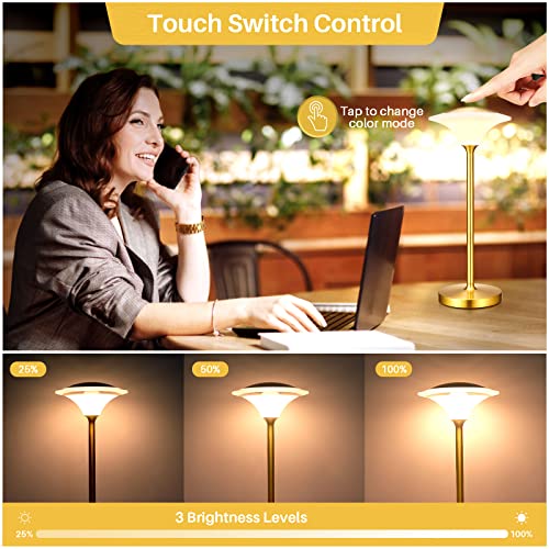 Lampada da Tavolo Senza Fili, Batteria Ricaricabile da 5000 mAh, Lega di Alluminio, Impermeabile IP54, Luce Calda con Touch Dimming su 4 Livelli, fino a 48 Ore, per Luce Notturna, Camera da Letto, Oro