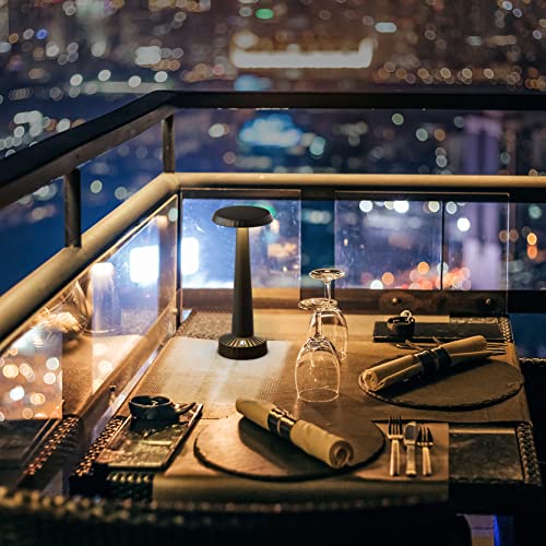 Lampada da Tavolo Senza Fili -Ricaricabile 5000mAh Batteria -Ricarica Rapida - Corpo in Metallo- LED Esterno Ristorante Lampada da Scrivania- Uso Interno/Esterno- Nero
