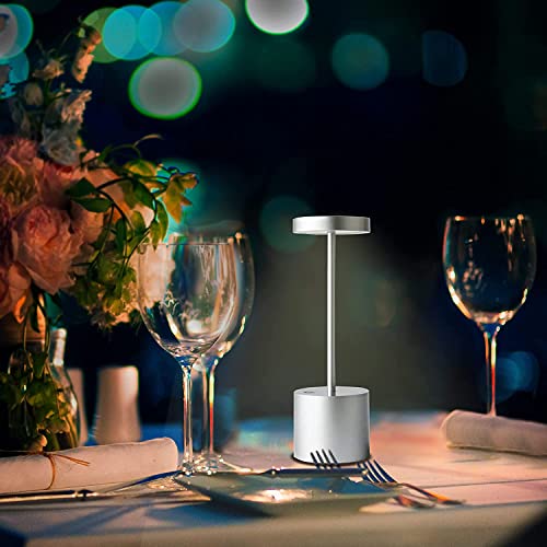 Lampada da Tavolo Senza Fili, LED Ricaricabile 3000 mAh Eye-Protect Lampada da Tavolo, lampada da comodino in metallo alluminio comodino, Adatto camera letto / studio /pranzo (2 argento)