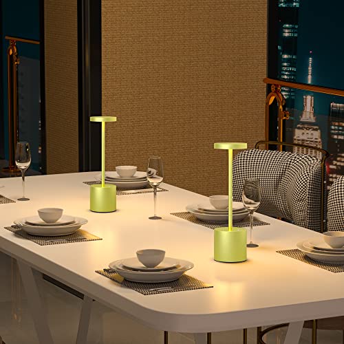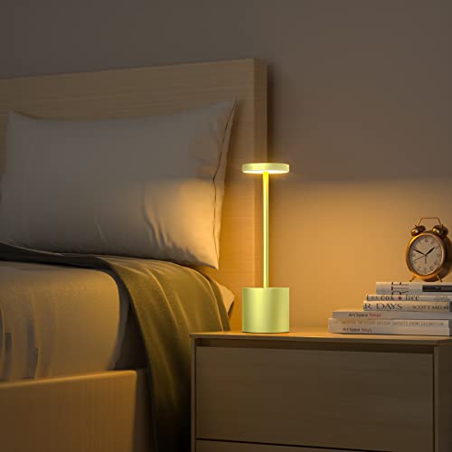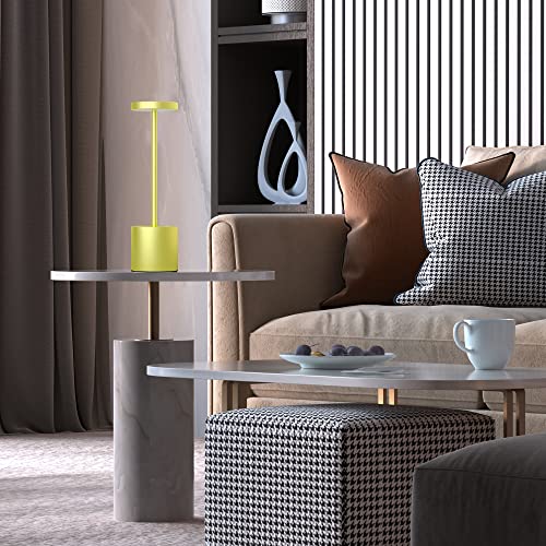 Lampada da Tavolo Senza Fili, LED Ricaricabile 3000 mAh Eye-Protect Lampada da Tavolo, lampada da comodino in metallo alluminio comodino, Adatto camera letto / studio /pranzo (2 giallo limone)