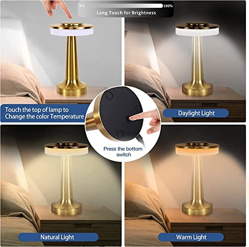 Lampada da Tavolo Senza Fili Ricaricabile USB, LED Eye-Protect Luce Notturna, 3 Colori Lampada da comodino con Regolazione Continua, Touch Lampada da Scrivania per Camera da Letto/Ristorante,rame