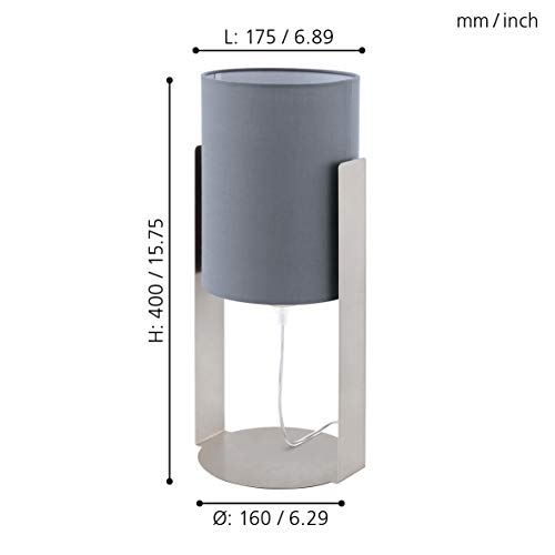Eglo Lampada da Tavolo Siponto, 1 Luce, Moderna, con Interruttore, Attacco E27. in Acciaio e Tessuto, in Nichel Opaco, Grigio
