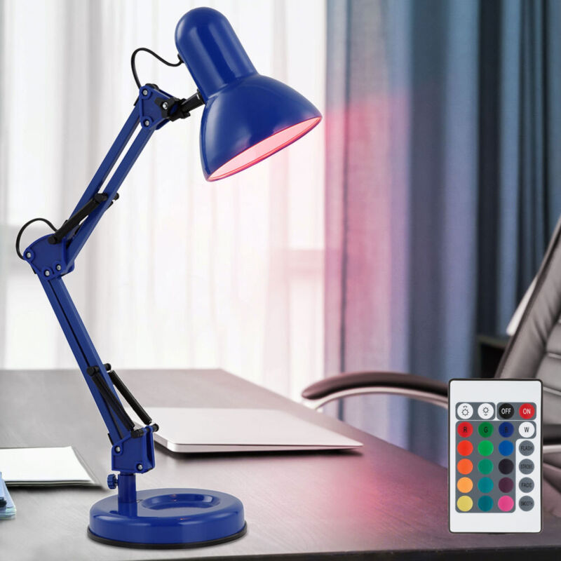 Descrizione Questa lampada da tavolo blu è l'aggiunta ideale a qualsiasi scrivania. È molto economico perché possono essere utilizzate lampade a LED. Tre giunti consentono di allineare la luce in modo ottimale a consentire un lavoro rilassato. Utilizzando il telecomando in dotazione, l'illuminante LED RGB può essere impostato in diversi colori e fornisce così un'illuminazione d'atmosfera. Rispetto alle luci normali, i faretti a LED consumano una quantità minima di elettricità e sono anche luci a risparmio energetico. Questo protegge l'ambiente e il tuo portafoglio. È inclusa una lampada LED RGB di alta qualità a risparmio energetico con telecomando per luce bianca e controllo RGB div> Dettagli lampada • Tipo lampada: lampada da tavolo • materiale: metallo• colore: blu• giunti regolabili • larghezza x altezza in cm: 42 x 62 • attacco: 1x E27 • lampadine incluse: si• Potenza lampadine: 1x 6 watt• flusso luminoso: 1x 470 lumen• colore luce: bianco caldo• Telecomando