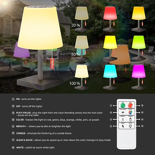 GGOO Lampada da Tavolo Solare Esterno, Solare e USB Ricaricabile Lampade da Tavolo a LED 7 Colori Dimmerabile Lampada da Tavolo a Batteria Senza Fili per Giardino Terrazza Interna Soggiorno(Grigio)