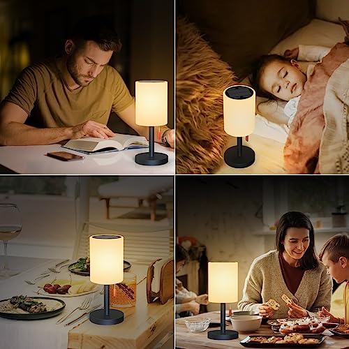 【2 in1 ricaricabile】: La lampada da tavolo batteria a led senza fili è alimentata da pannelli solari, risparmia energia;