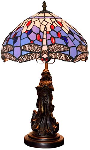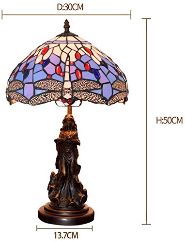 Lampada da Tavolo in Stile Lampada Libellula di Tiffany di 12 Pollici Seablue Macchiato Paralume in Vetro, Perle di Lampada di Vetro retrò Ufficio Pastorale Mano E Macchia Comodino Salon