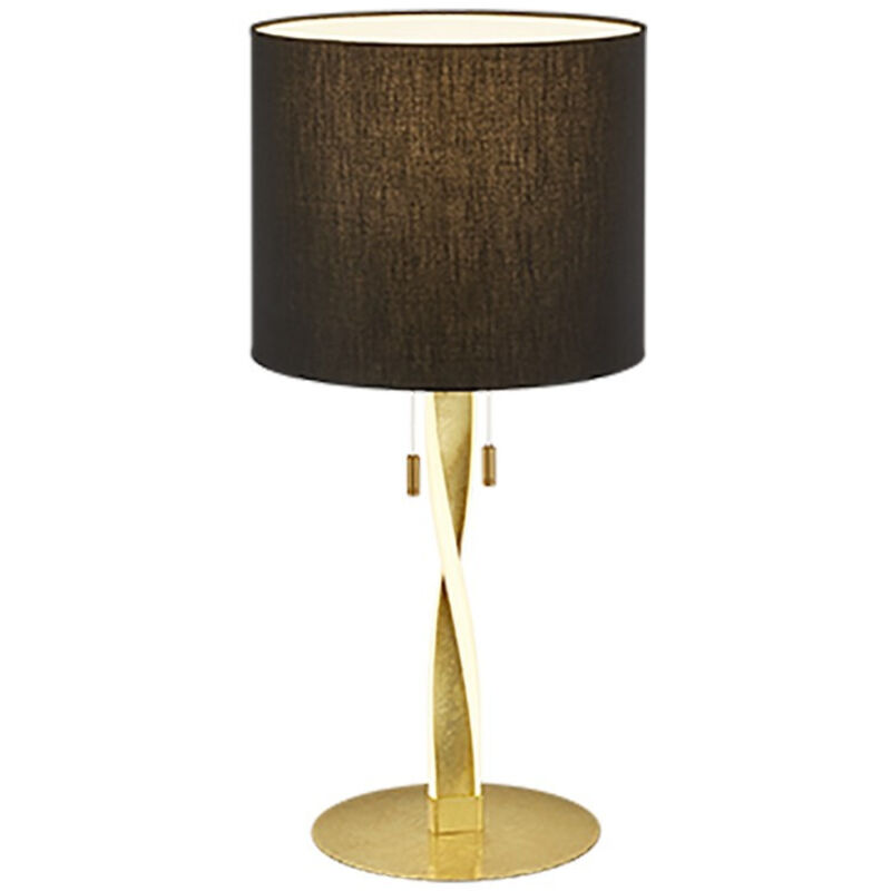 NANDOR Lampada tavolo GD Trio Nandor di GD Trio, lampada da tavolo con paralume nero e asta elicoidale illuminata led foglia oro con interruttori separati h.62cm Caratteristiche: Gruppo di prodotto: Lampada tavolo Tipologia: Interno Tecnologia: LED integrato Stile: Moderno Materiale: Metallo Colore finitura: oro Classificazione IP: IP20 Classe di protezione: 2 Fonte di luce principale: Fonte di luce principale: incl. Tecnologia: LED Numero di attacchi: 2 Watt: 3 Attacco: SMD Lumen: 300 Kelvin: 3000K Volt: 230 Durata nominale (h): 20000 Numero accensioni: 15000 Classe energetica: A+ Funzionalità: Interruttori separati Interruttore con tirata Dimensioni: Altezza (Cm): 62 Diametro (Cm): 30 Cavo-Base-Spina (Mm): 1750 Colore del cavo: NERO Peso netto (Kg): 1,605