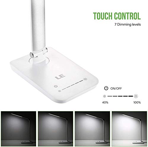 LE Lampada da Tavolo LED Touch, 8W 500lm, Dimmerabile in 7 Livelli di Luce, Luce Bianca Naturale Testa Rotabile 270° per Scrivania, Studio, Letto, Computer ecc