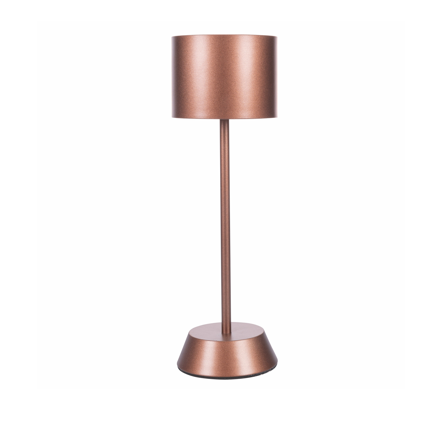 Questa moderna lampada da tavolo è realizzata per offrirti il massimo della praticità. Illumina con un solo tocco scegliendo fra 3 intensità di luce: calda, fredda o naturale. Il design essenziale e di classe si adatta ad ogni stile d'arredo. La finitura bronzo completa l'opera rendendo irresistibile questo funzionale accessorio. Ricarica la batteria al litio in modo pratico tramite cavetto USB e usa la lampada dove e quando vuoi! Diametro 12 cm. Altezza: 38 cm.