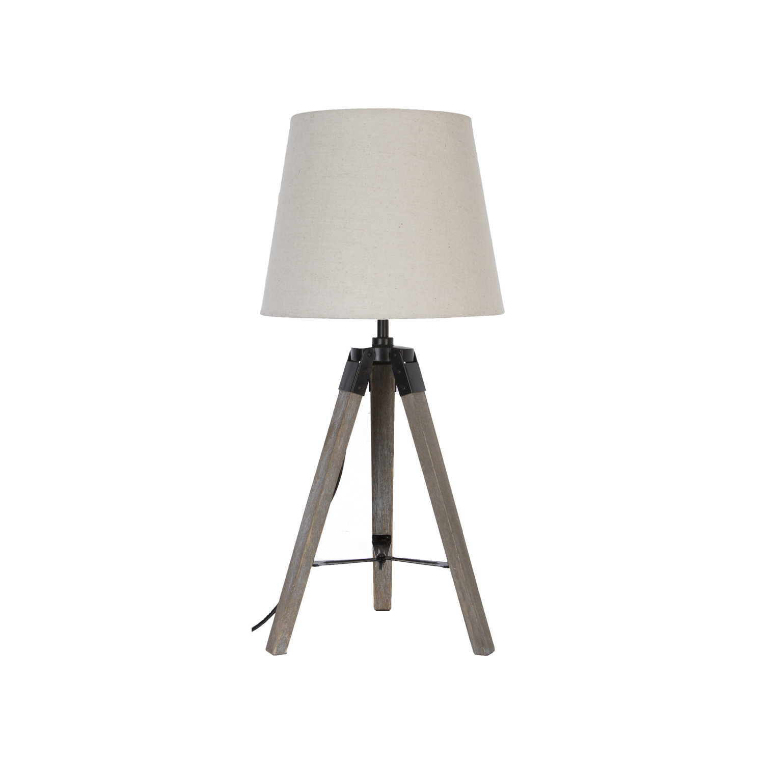 Crea un'atmosfera accogliente in casa tua con questa lampada da tavolo con base treppiede in legno. Tramite il paralume in tessuto si diffonderà una piacevole e soffusa illuminazione per tutta la stanza, dando vita a un'atmosfera intima e accogliente. La base a 3 gambe assicura massima stabilità su qualsiasi superficie piana verrà posizionata. Compatibile con una lampadina da 40 W con attacco E27 non inclusa. Lunghezza filo della lampada: 150 cm.