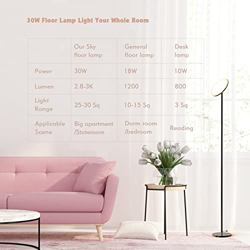 [Lampada da terra a LED da 30 W, più luminosa delle altre] - Questa lampada da terra più luminosa ha una temperatura di colore del LED fino a 7000 K e 2800 lumen. Può illuminare le aree scure della stanza con una luce morbida e calda. La luce che brilla sul soffitto diffonde ancora di più la luce. L'area della radiazione luminosa è compresa tra 20 e 40 metri cubi. Questa lampada da terra da 30 W è abbastanza luminosa da riempire l'intera stanza.