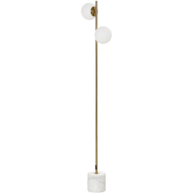 Lampada Lampada da Terra 35x35x165 cm E27 con 2 Paralumi a Sfera Oro Illumina i tuoi spazi con la lampada da terra ! Ha 2 originali paralumi sferici orientati in direzioni opposte, per portare tutta la luce che ti serve in ogni stanza. La lampada a piantana ha una base in marmo spesso che assicura una stabilità ottimale. L'interruttore a pedale ti permette di accendere e spegnere facilmente la luce e grazie al lungo cavo di alimentazione posizioni la lampada da lettura dove preferisci. STILE CONTEMPORANEO: Il design contemporaneo con 2 paralumi sferici in vetro e una base in marmo rende questa lampada da terra un elegante complemento d'arredo per il soggiorno, la sala, la camera da letto, ecc. 2 PARALUMI: Questa lampada moderna offre un'illuminazione ottimale grazie ai 2 paralumi orientati in direzioni opposte. BASE STABILE: La lampada a piantana assicura una stabilità ottimale grazie alla base in marmo spesso e al palo alto in metallo. FACILE DA USARE: L'interruttore a pedale ti