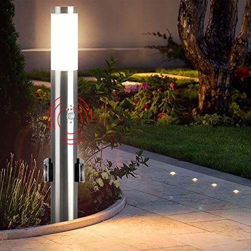 Lampada da terra in acciaio inossidabile con prese esterne rilevatore di movimento luce per percorso da giardino argento in un set che include lampadine a LED