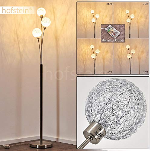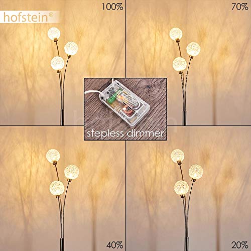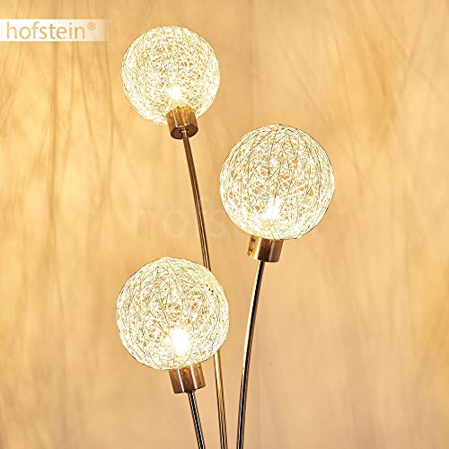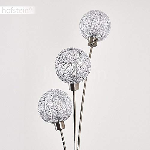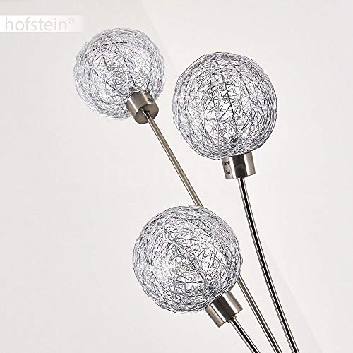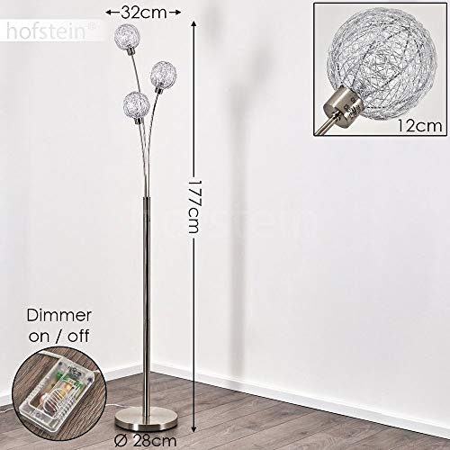 Lampada da terra Bernado dimmerabile all'infinito in nichel opaco/argento, G9, 3 globi metallici, lampada ad arco, soggiorno/camera da letto/corridoio, interruttore a pedale sul cavo, senza lampadine