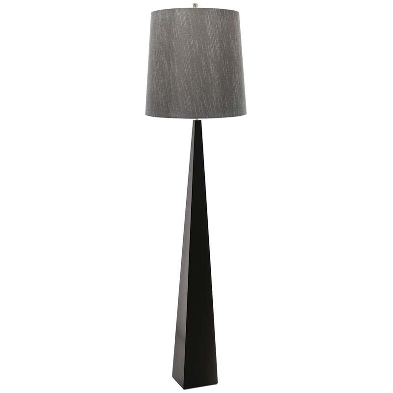 Descrizione Lampada da terra in acciaio verniciato nero con colonne affusolate e dettagli in nichel lucido. Comprende un paralume in finta seta grigio scuro con schienale fisso. Dettagli • Tipo prodotto: Lampada da terra • Altezza in cm: 181 • Larghezza in cm: 46 • Materiale: Acciaio dolce • Finitura: Nero • Qtà Prese: 1 • Potenza massima: 100W • Presa: E27 • Lampadina inclusa: no • Tensione: 220-240V 50hz • Classe di protezione: Classe I