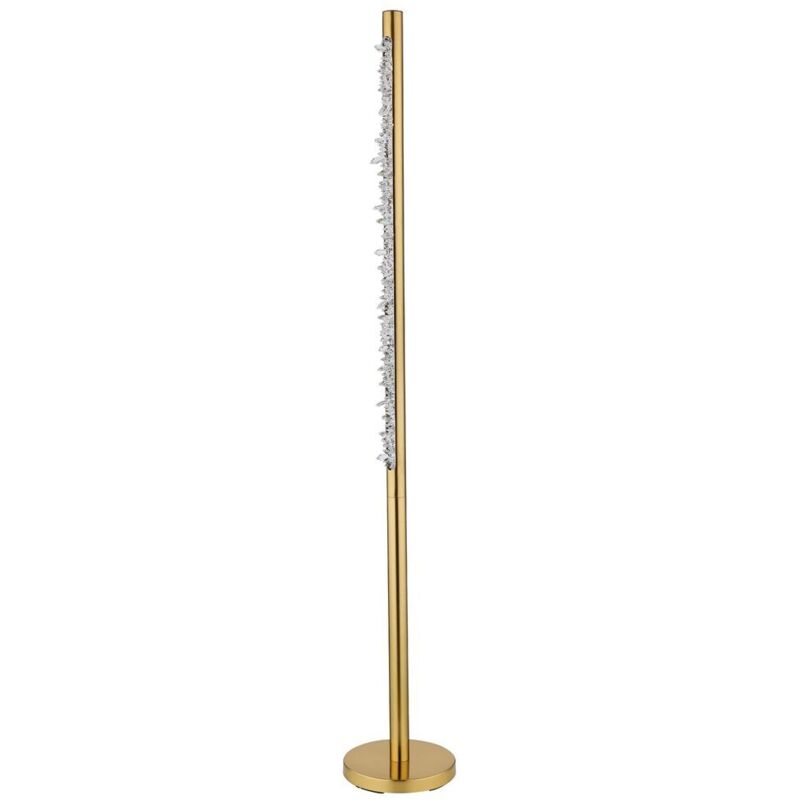 Descrizione Questa lampada da terra colpisce per il suo design semplice realizzato in metallo color ottone. La lampada da terra alta 151 cm è composta da un'asta di metallo fissata a una base rotonda e decorata con bellissimi cristalli acrilici su un lato. Questi coprono le lampade a LED incluse, che forniscono 980 lumen di luce con un piacevole colore della luce di 3000 Kelvin (bianco caldo). Puoi completare il quadro generale dei tuoi interni con altri modelli della stessa serie. La lampadina a LED è installata in modo permanente nella lampada. Particolare lampada • Tipo di lampada: lampada da terra • Materiale: metallo, cristalli acrilici • Colore: color ottone, trasparente • Grado di protezione: IP20 • Classe di protezione: 2 • Dimmerabile • Diametro x altezza in cm: 23 x 151 • Sorgente luminosa: LED • Lampadine incluse: Sì (installate in modo permanente) • Potenza della lampada: 15 watt • Flusso luminoso: 980 lumen • Colore della luce: bianco caldo • Alimentazione: 230V, 50Hz