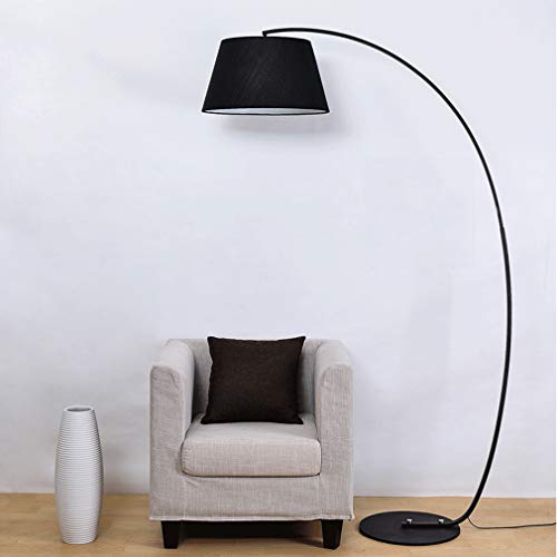 HKLY Lampada da Terra ad Arco Design, 12W LED Piantana Nera Classica 3 Temperature di Colore Lampada a Stelo Ferro con Paralume in Tessuto Base Rotonda per Soggiorno, Camera da Letto, Ufficio,Nero