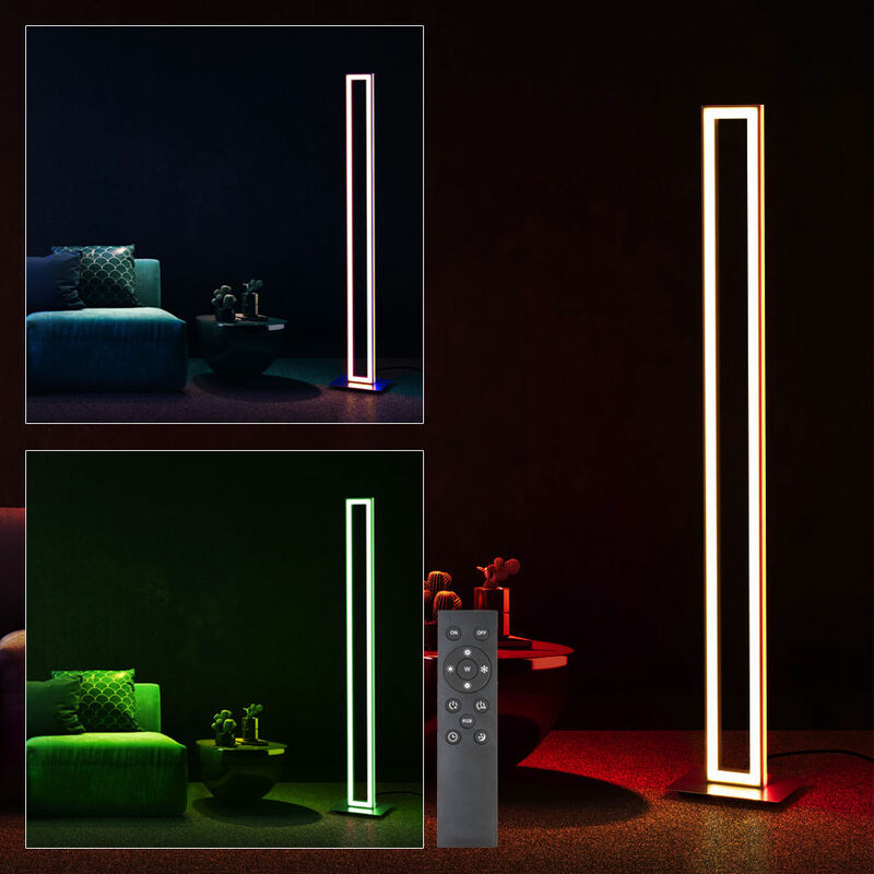Descrizione Con la lampada da terra a LED ottieni un colpo d'occhio impressionante e funzionale nelle tue quattro pareti! La struttura in alluminio della lampada da terra si distingue per il suo design purista. La luce a LED ha molto da offrire dal punto di vista funzionale. Non è solo dotato della tradizionale luce anteriore, ma anche di una luce laterale. La luce anteriore è dotata di gestione del colore CCT, quindi puoi controllare individualmente la temperatura del colore della luce da bianco caldo a bianco neutro e attenuare l'intensità della luce. La luce di posizione è dotata di gestione del colore RGB. Questo cambio di colore RGB ti consente di far risplendere la luce in un colore da oltre 16 milioni di sfumature di colore. Queste regolazioni si effettuano molto facilmente tramite il radiocomando in dotazione. Puoi anche controllare le sorgenti luminose separatamente: accendi solo la luce anteriore, solo la luce laterale o entrambe insieme. L'impostazione desiderata può essere