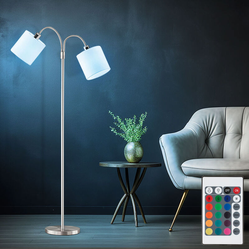 Descrizione La nostra lampada da terra è all'altezza del suo nome. Quando fuori inizia a fare buio, con i suoi due paralumi crea un'atmosfera luminosa accogliente. Con il suo design moderno, la lampada si adatta facilmente a qualsiasi ambiente. Può essere posizionato ovunque nella stanza, accanto alla zona divano o per accogliere i visitatori in arrivo nel corridoio. Osservando più da vicino si notano alcuni dettagli che rendono questa lampada da terra ancora più interessante. Da un lato i paralumi sono mobili. Ciò significa che puoi regolare il cono luminoso individualmente nella stanza quando fai lavori manuali, leggi o hai bisogno di luce per altre attività. I due paralumi possono invece essere controllati separatamente. Questo ti dà la possibilità di accendere solo una lampada o entrambe insieme se vuoi che sia più luminosa. Un bel design per interni moderni.Il design della lampada è volutamente classico e discreto. La base della lampada in metallo color nichel opaco garantisce la