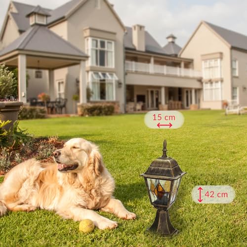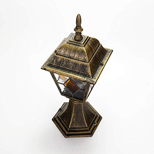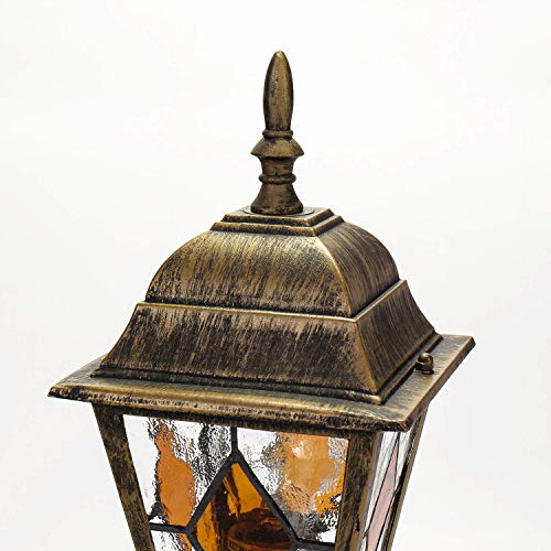 Lampada da terra per esterni Lampioncino dal design rustico color oro anticato A:42 cm E27 ideale per vialetto giardino balcone terrazzo