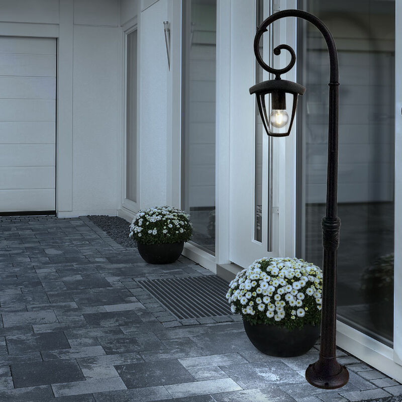 Descrizione Elegante lampada da terra in alluminio nero. Fai risplendere il tuo spazio esterno! Ad esempio, crea un percorso luminoso con molte di queste luci nel tuo giardino o vialetto. È inclusa una lampadina a LED con effetto fuoco. Particolare lampada • Tipo di lampada: lampada da terra • Materiale: alluminio, nero • Paralume: plastica, trasparente • Grado di protezione: IP44 • Larghezza x altezza in cm: 34,5 x 136,5 • Presa: 1x E27 • Lampadina inclusa: sì • Potenza lampada: 1x 3 watt • Flusso luminoso: 1x 88 lumen • Colore della luce: bianco caldo • Alimentazione: 220-240V, 50-60Hz Dettagli Lampadine a LED • Tipo di sorgente luminosa: LED • Attacco: E27 • Materiale: plastica • Flusso luminoso: 88 lm (lumen) • Consumo energetico: 3 kWh/1000h • Temperatura colore: 1600 K (Kelvin) • Colore della luce: bianco caldo • Resa cromatica (Ra): 80 • Consumo energetico nominale: 3 W (watt) • Risparmio energetico: 88% • Rispetto alla normale lampadina: 3W ? 25W • Durata nominale: 25.000 h
