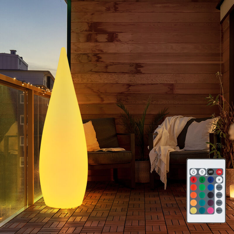 Descrizione La lampada sorprendente è la scelta perfetta per l'illuminazione esterna espressiva. Sia individualmente che combinata in un gruppo, questa serie lascia un'impressione. Grazie al cambia colore RGBW integrato, il colore della luce può essere facilmente cambiato tramite telecomando. La lampada non solo crea accenti colorati, ma crea anche l'atmosfera perfetta! Grazie al funzionamento a batteria, può essere posizionato in modo flessibile in qualsiasi posizione desiderata. La batteria viene caricata tramite una connessione USB. Il design bianco della lampada fa risaltare i colori RGBW e rende meravigliosamente facile l'abbinamento con i mobili da giardino esistenti. Nella fornitura è inclusa una lampadina a LED con telecomando per il controllo RGB. Particolare lampada • Tipo di lampada: lampada da terra • Materiale: plastica • Colore bianco • Telecomando • Cambio di colore • Batteria inclusa • Dimmerabile • Grado di protezione: IP44 • Diametro x altezza in cm: 25x80 • Attacco
