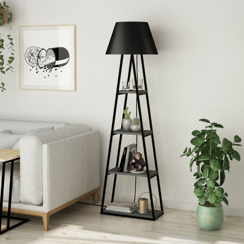 Lampada da terra in legno nero antracite con mensole Pal 50x165 La lampada da terra di Pal è un'opera d'arte di design e funzionalità. Realizzata in legno nero antracite, questa lampada si distingue per l'eleganza e la cura dei dettagli. Alta 165cm, è dotata di mensole dove potrai appoggiare libri, occhiali o oggetti decorativi. L'illuminazione è regolabile grazie al dimmer presente sul cavo. La lampada da terra di Pal si integra perfettamente in qualsiasi ambiente, dalla zona living alla camera da letto, e illumina con stile la tua casa. Caratteristiche: Materiale truciolare alta qualità Spessore 18 mm Rivestimento in melaminico Struttura forma piramidale con mensole di diversa misura Colore antracite nero Paralume Tessuto cotone nero Misure 50x22x165h cm Prodotto fornito smontato Lampadina non inclusa Dimensioni: Larghezza 50 cm Profondità 22 cm Altezza 165 cm