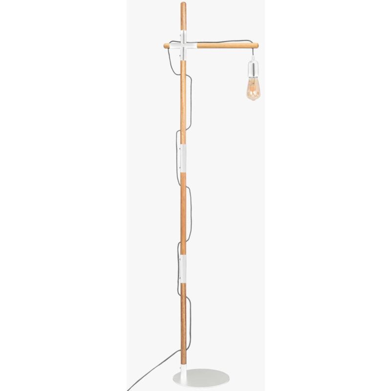 Lampada da terra dal design moderno, realizzata in alluminio bianco o nero opaco, che si abbina alla struttura in legno. Il cavo che avvolge la lampada è bianco e nero. **Lampadina E27 non inclusa**. E27 60W 220-240V/AC