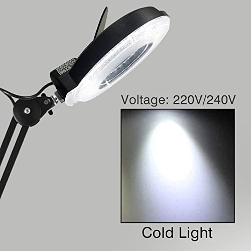 Questa lampada d'ingrandimento è regolabile e rotante secondo le vostre esigenze, molto pratica, è realizzata in un resistente telaio in ferro metallico e un braccio di supporto in metallo spesso, è possibile regolare l'angolo per diverse situazioni in cui è difficile lavorare.